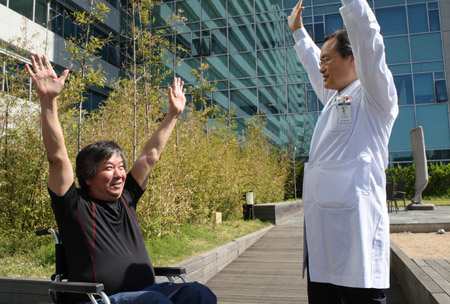 8年后的2006年,樸某在首爾峨山醫(yī)院接受了向損傷的脊髓注入干細(xì)胞的手術(shù)。一年半后,上半身恢復(fù)了知覺,胳膊也有了力氣,可以向上張開雙臂。