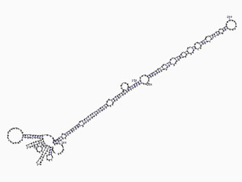 解析miRNAs加工過程,對于了解miRNAs的功能和調(diào)控機制至關(guān)重要,這種RNA從初級轉(zhuǎn)錄本(primary transcript),也就是pri-miRNA,轉(zhuǎn)變成為稱為miRNA前體(pre-miRNA)的莖環(huán)結(jié)構(gòu),最后成為了具有功能的miRNA。細 胞借助于一種特殊的機器——“微處理器”復(fù)合物("Microprocessor" complex)將這些長鏈的miRNA前體切斷,然后將它們轉(zhuǎn)變?yōu)檩^短的功能性的miRNA形式。生成的miRNAs與特異性信使RNA(mRNA)分 子結(jié)合,抑制轉(zhuǎn)錄后基因表達,在調(diào)控基因表達、細胞周期、生物體發(fā)育時序等方面起重要作用。